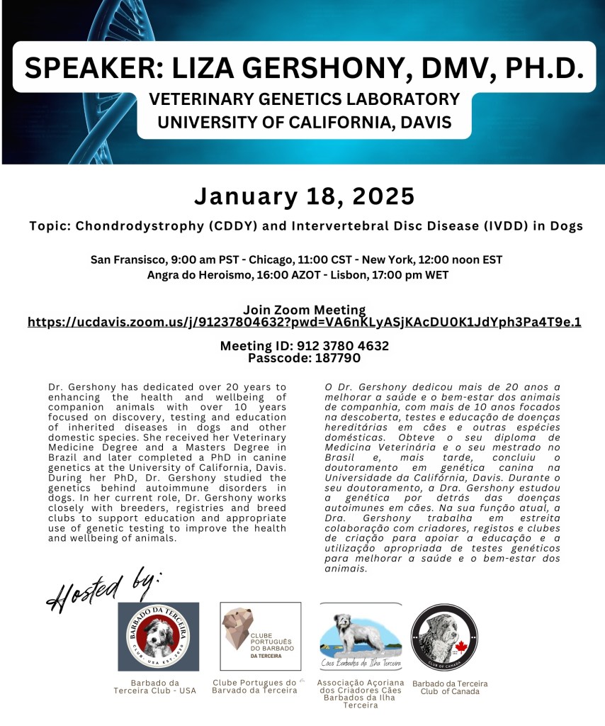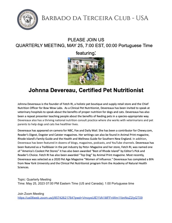 June 4, 2022: SAVE THE DATE – BDT Meetup, Frederick, Maryland. Details will follow. Barbado da Terceira swimming will be optional.